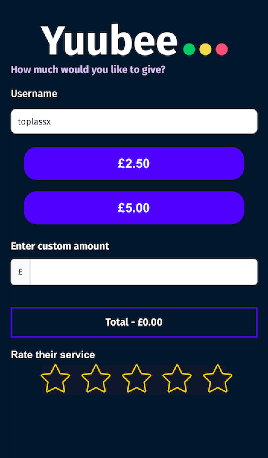 Yuubee is compliant with HMRC and relevant employment and earnings legislation where applicable. You keep 100% of the tips made - and tippers can choose to cover the fees if they want (over 80% do). Platform fees are simple and transparent: 5% on payouts for standard plans or ‘0% fees’ with a Boost subscription - in-App.