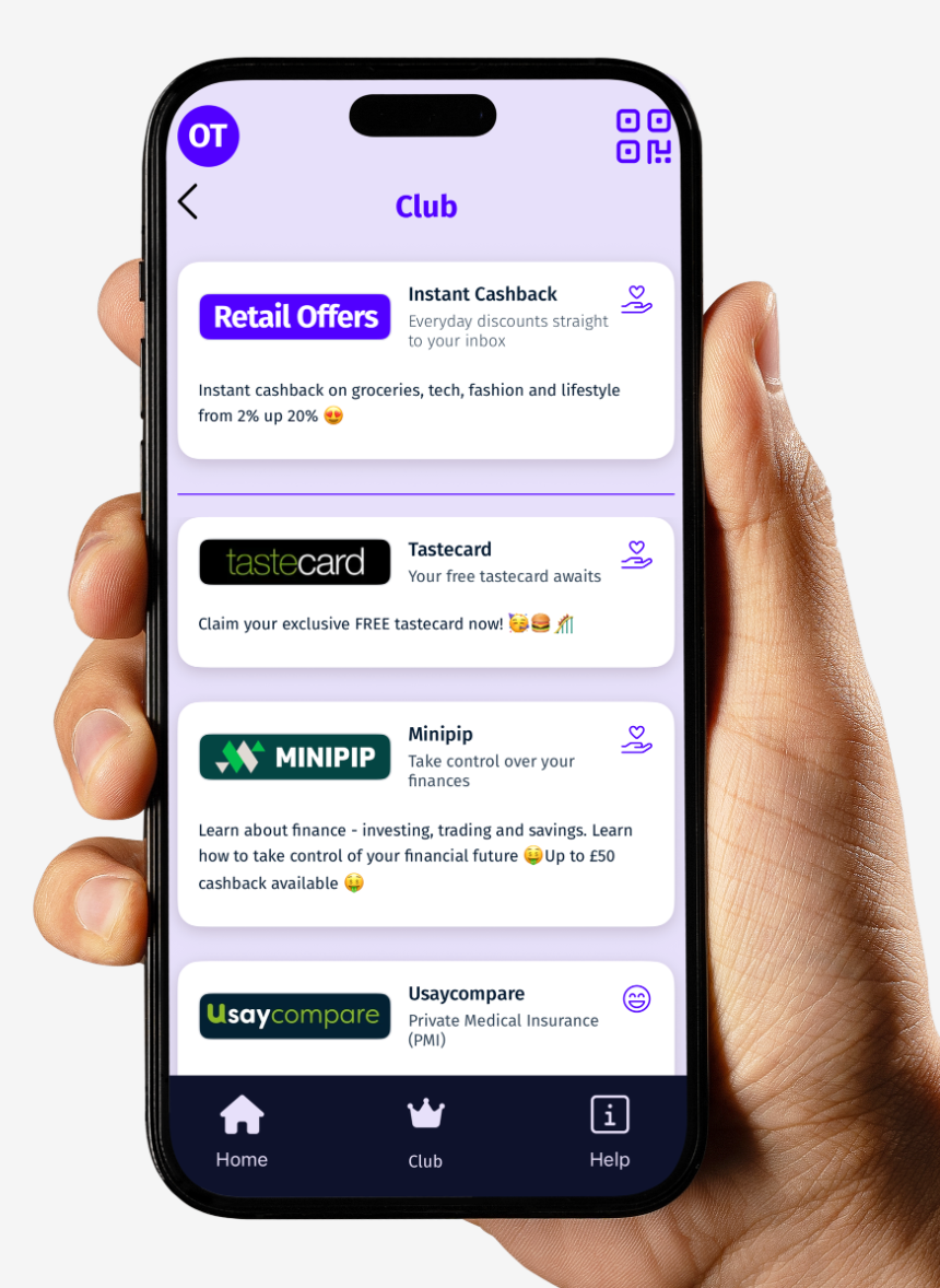 With rewards powered by trusted partners including Sainsbury’s, Asda, Tesco, Currys, Uber, tastecard, and JD Sports, The Club helps you save on everyday essentials, travel, food, tech, and more - plus access to a growing range of financial services including MiniPip and Usay Compare.